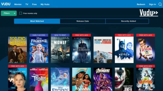 Why it’s the best: Vudu is primarily a rental and purchase service, but it has a large section called “Free with Ads”. It has thousands of movies and TV shows to watch for free.