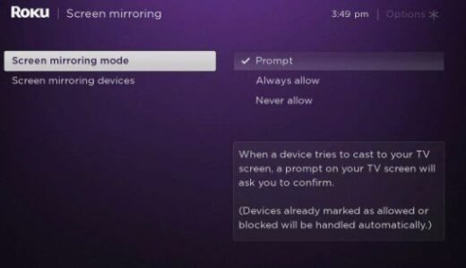 Prompt Screen Mirroring Mode (Prompt: This is a secure option. It will not let you connect any other device without permission. If someone tries to connect their device to Roku, a notification will appear on your TV screen asking, “Do you want to allow that device to connect?”. The connection will not happen until you select “Allow”.)